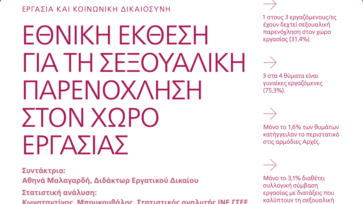 Θα βρείτε την Εθνική Έκθεση για τη Σεξουαλική Παρενόχληση στην Εργασία εδώ.